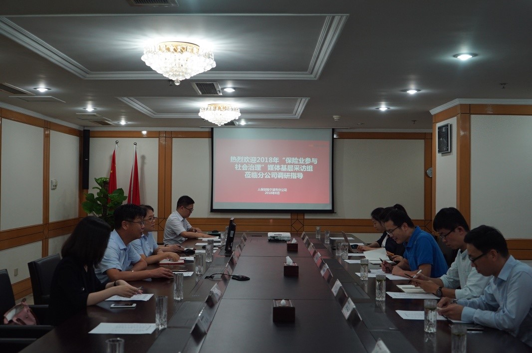 8月21日,基层采访组一行首先来到人保财险宁波分公司,了解医疗责任险、电梯安全责任险、城镇住房综合保险以及公共巨灾保险在宁波创新开展情况。